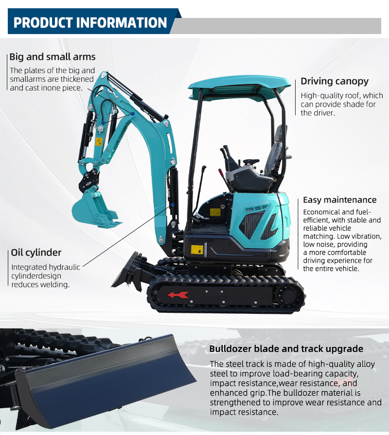 4. This mini excavator can work continuously for a long time, thanks to the upgraded and optimized engine cooling system by a team of engineers from top universities in China, which significantly improves the overheating phenomenon of the machine.