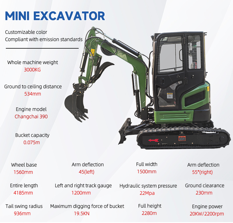 2 This 3 ton excavator has a powerful engine and a perfectly matched hydraulic system to provide efficient, economical and reliable performance.