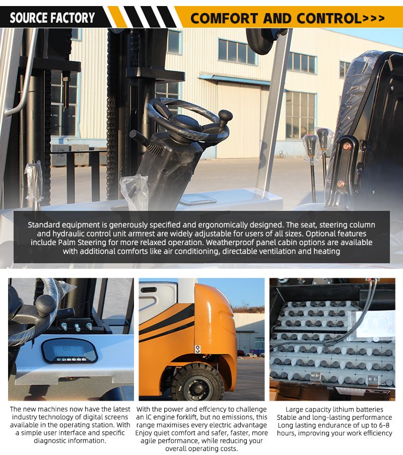 1.Comprehensive product line: The Sonca Group has successfully developed multiple series of forklift products, including 1-5 ton electric forklifts, 2-10 ton four-wheel drive off-road forklifts, and 2-10 ton two-wheel drive diesel forklifts.