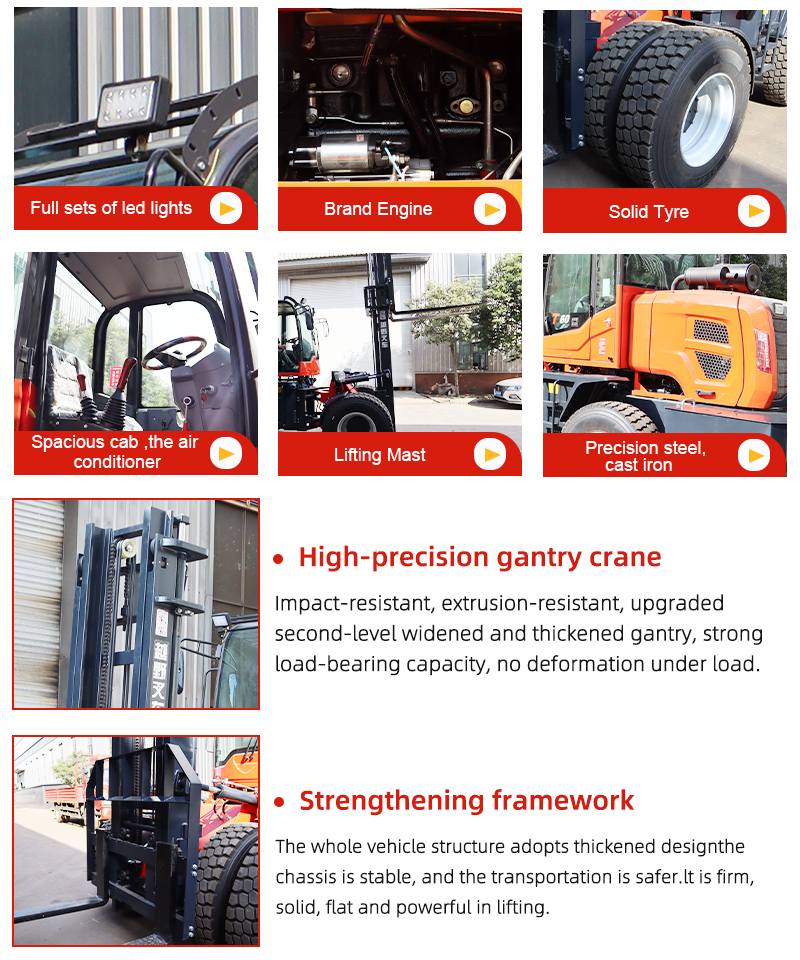 1.Comprehensive product line: The Sonca Group has successfully developed multiple series of forklift products, including 1-5 ton electric forklifts, 2-10 ton four-wheel drive off-road forklifts, and 2-10 ton two-wheel drive diesel forklifts.