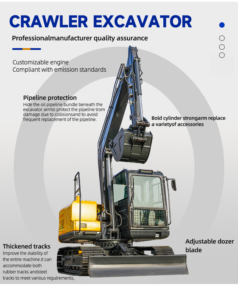 3. Climbing ability: 42°; far exceeding the 30° limit of wheeled excavators, suitable for steep slope operations such as mining stripping and terraced field renovation.